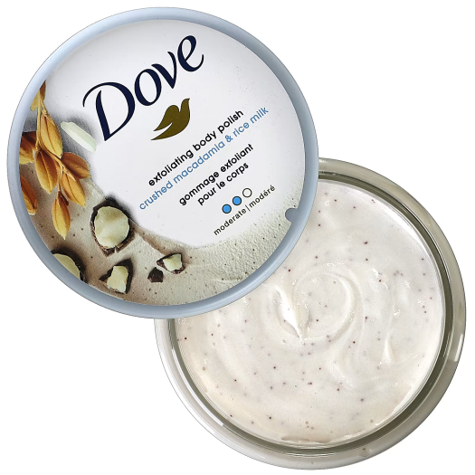 - Sau đó dùng một lượng Dove Tẩy Tế Bào Chết Macca vừa đủ thoa lên làn da