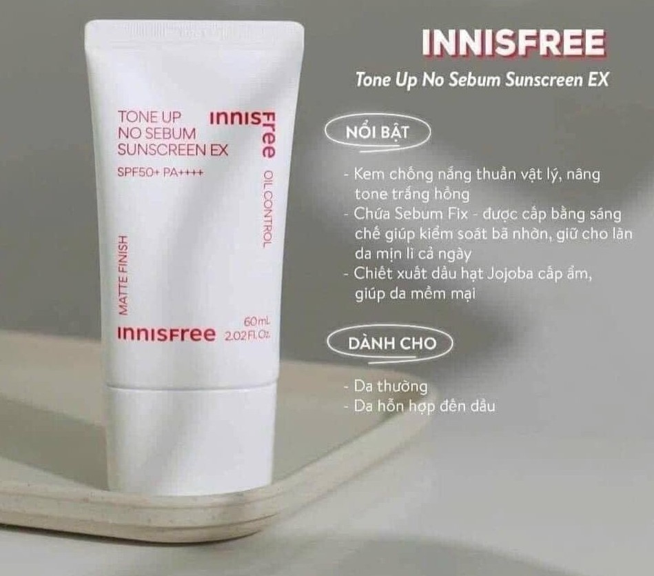 - Sau đó dùng một lượng Kem Chống Nắng Nâng Tone Innisfree Tone Up vừa đủ thoa đều lên làn da