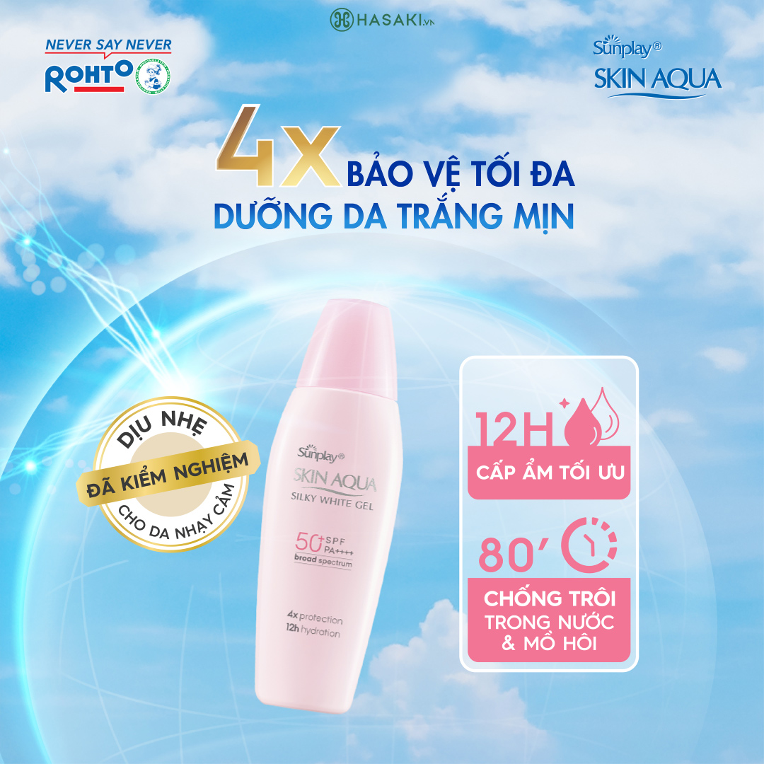 - Sản phẩm Sunplay Kem Chống Nắng Dưỡng Da Sáng Mịn Skin Aqua Silky White SPF50 PA++++ chính hãng tại Mỹ Phẩm Ngân
